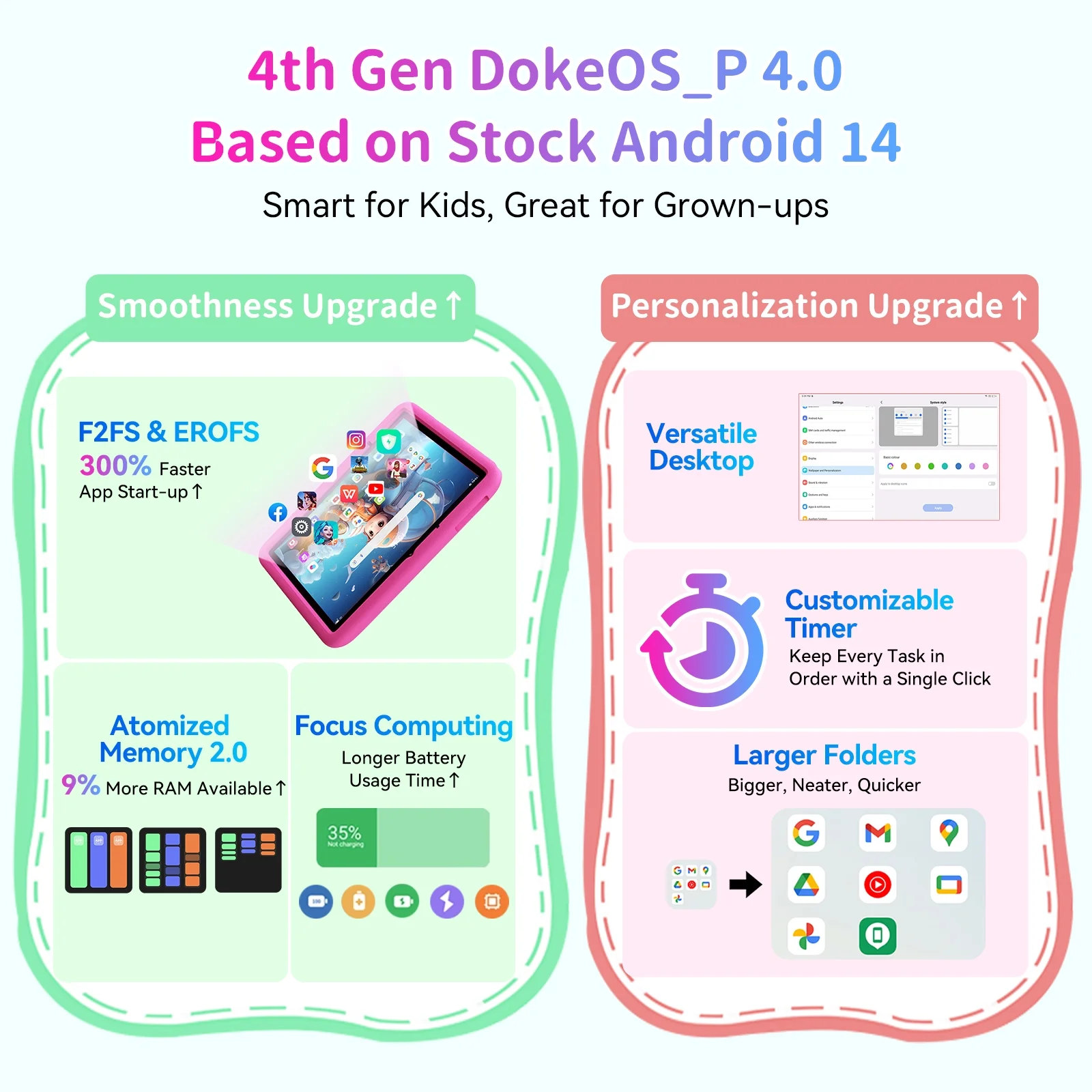 - Computer tablets for kids and toddlers: Equipped with Android 13 which is more Personalize, more Convenience, more Privacy. And the cute themes is suitable for children.