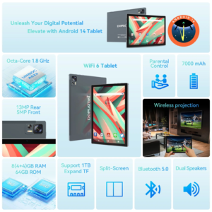 - 🎁Perfect Gift Tablet: Whether it’s for Christmas, Valentine‘s Day, or birthdays, this tablet is the perfect gift option with its stylish design and latest Android 14 OS upgrade. Plus, its user-friendly interface makes it an ideal gift for tech enthusiasts of all levels