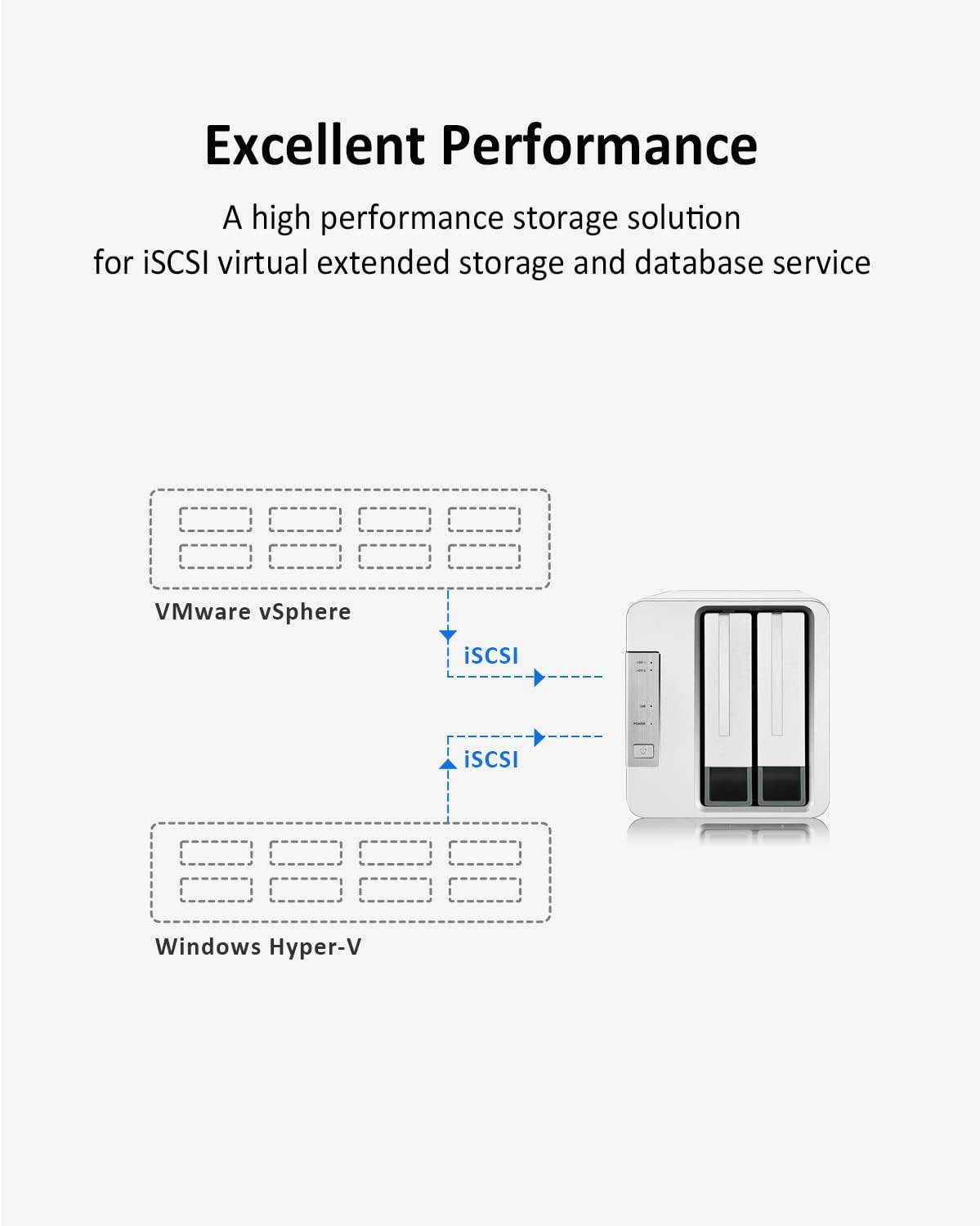 The NAS server 2-Bay F2-423 is suitable for SMB users who need high-performance storage solutions. High performance means that users can easily handle high-load assignments, while multiple business-level backup solutions ensure data safety and prevent the potential risk of data loss.