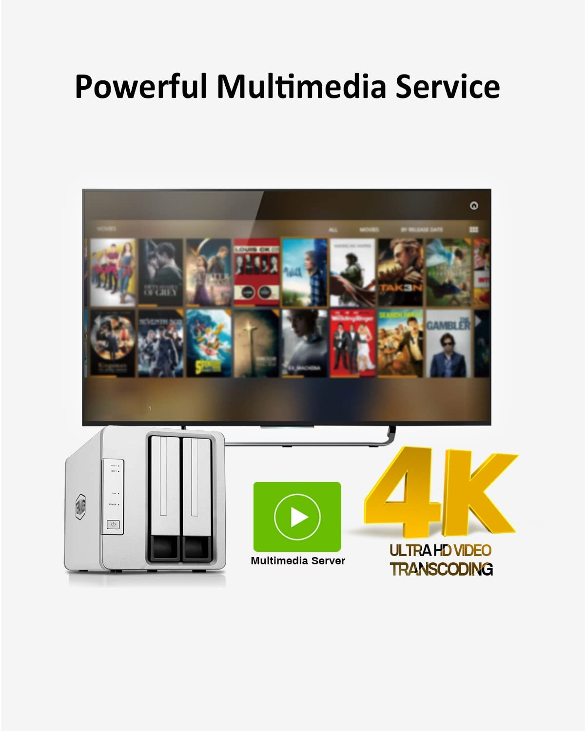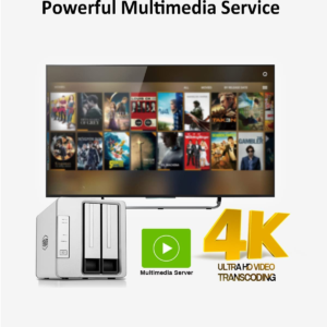 With 4K video decoding capability, the F2-423 media server is compatible with uPnP/DLNA protocol and can stream videos to various multimedia devices, including computers, smart phones, media players and televisions.
