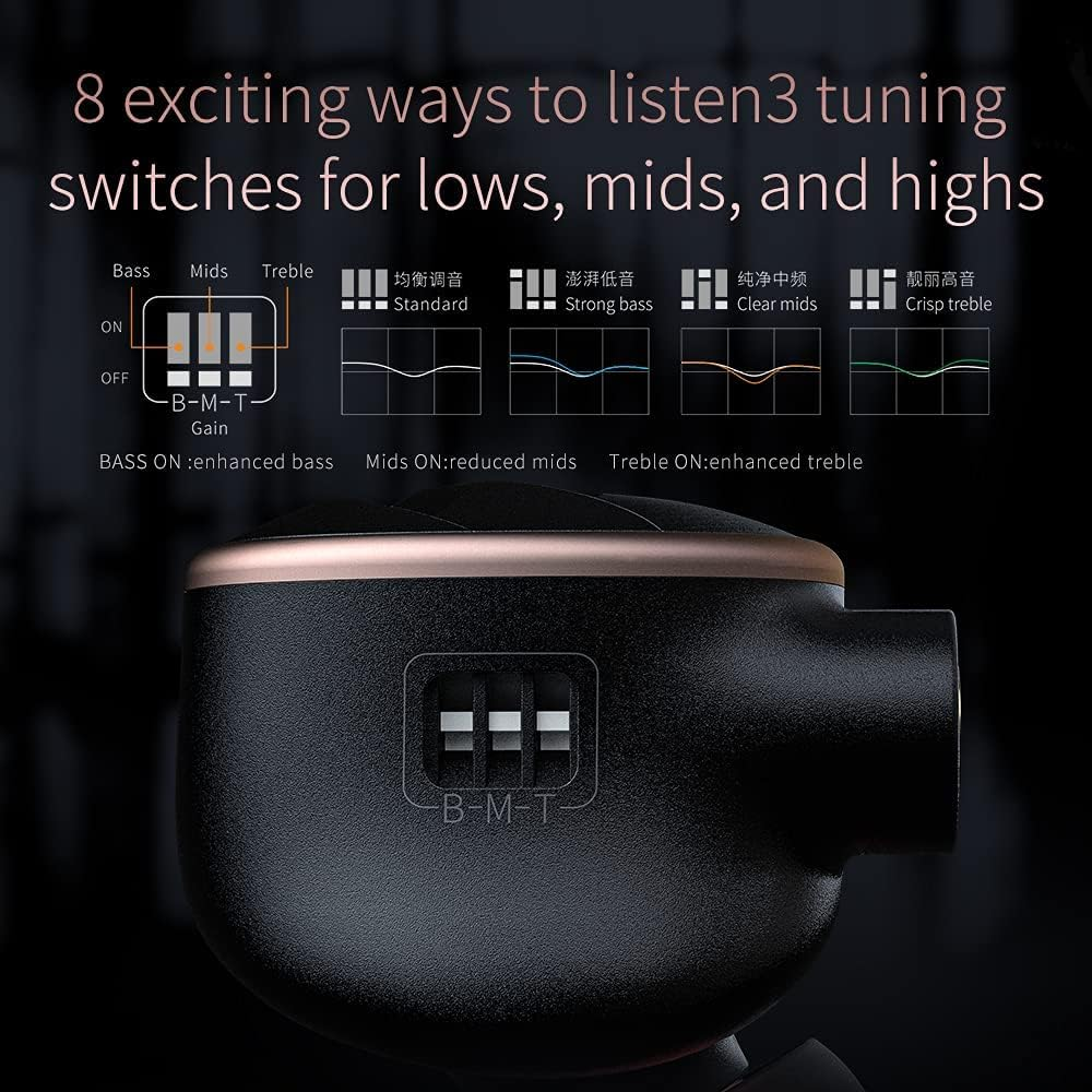 - 【3 sound adjustment switches, 8 possible sounds】The FH5s’s use of electronic crossover technology allows you to tune the sound to exactly the way you want with 3 sound adjustment switches. The impedance, bass, mids and treble adjustment depends on what music you are listening or what your preferences are!